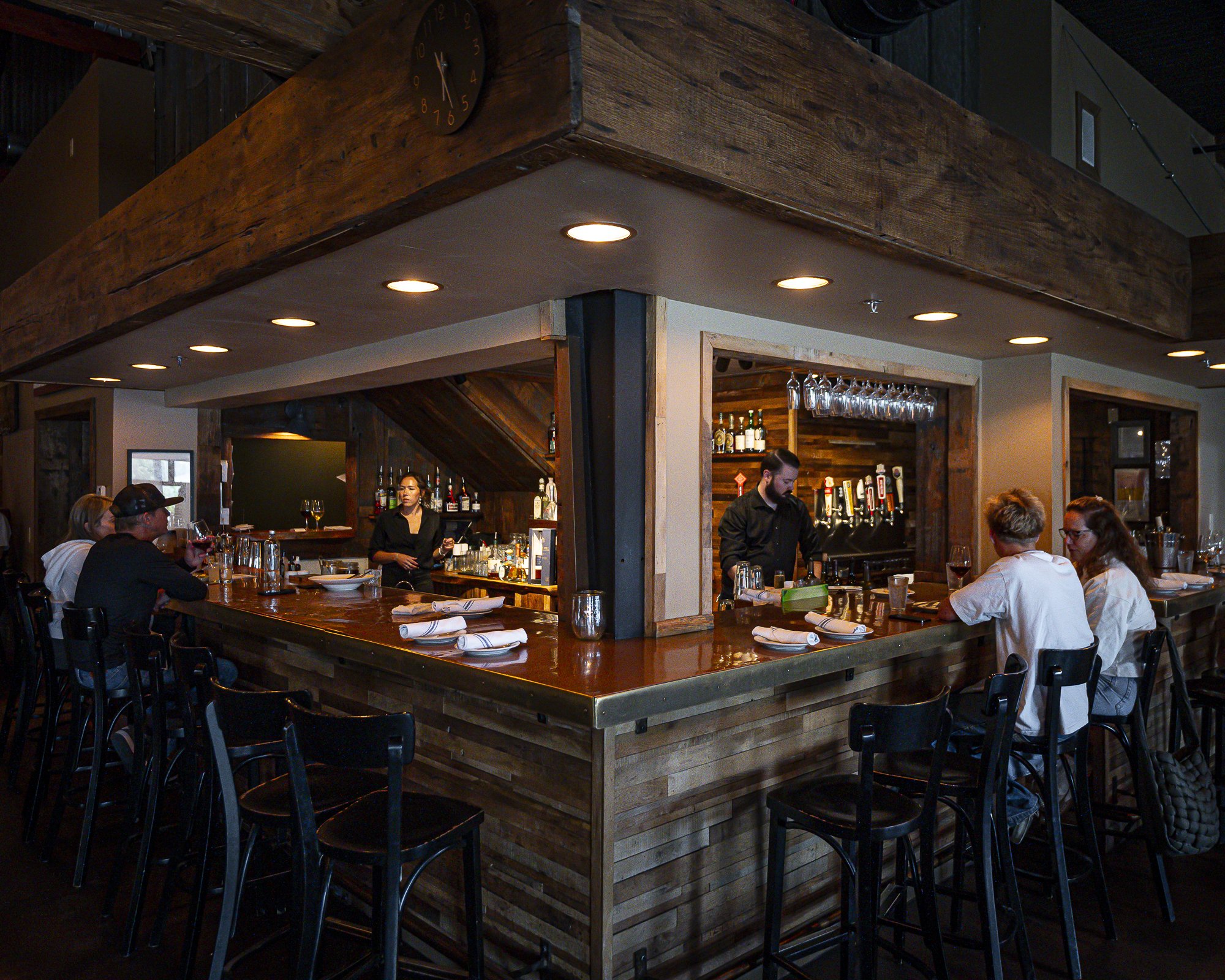 The open kitchen anchors the room, offering guests a front-row seat to the action. A wood-fired oven, brick hearth, Tuscan grill, and working spit-roaster set the stage — both visually and culinarily — for an evening built around fire, flavor, and craftsmanship. It’s not just dinner — it’s a dining experience.